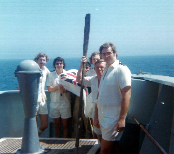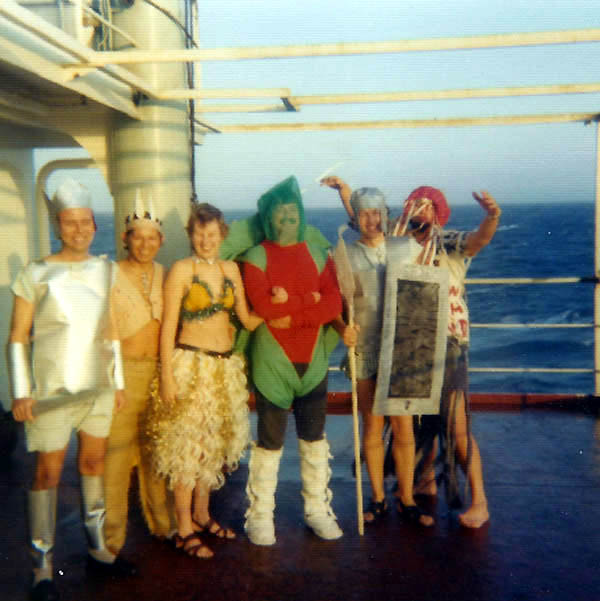 Officers on deck in fancy dress