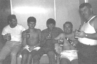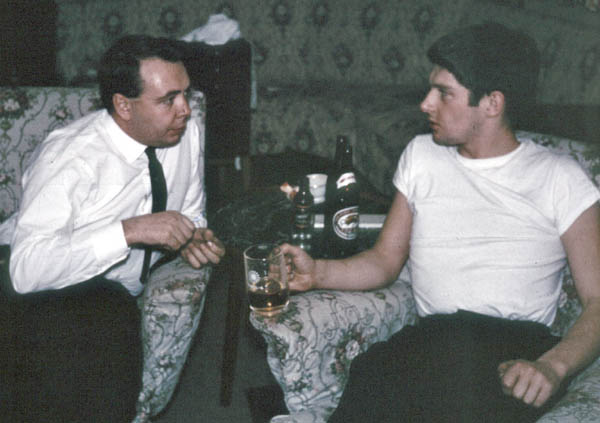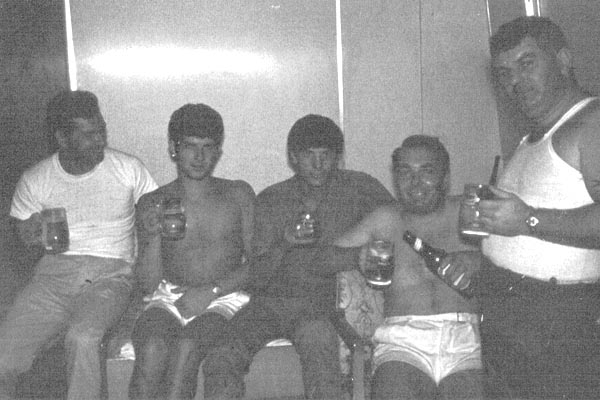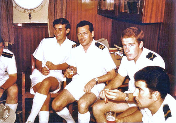 3/E Roger Shannon, R/O Dick Gibbons, 4/E Pete Turnbull, 3/O Ralph Woodward.   Christmas 1965. Left. Elec Carlos Villa Landa, 4/E Pete Turnbull, J/E "Doctor" Foster, App Lofty Cruttenden. Right. 3/O Ralph Woodward, App Pat Lewis, App Stevens.