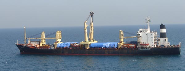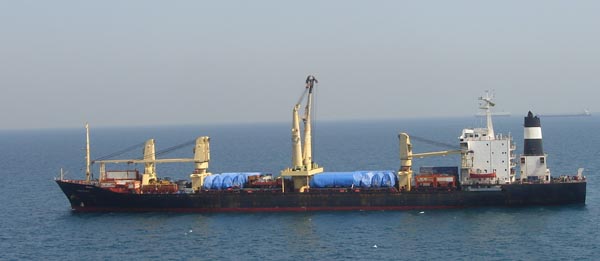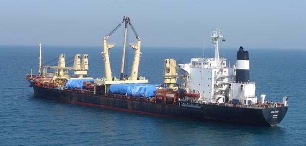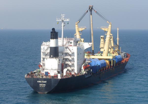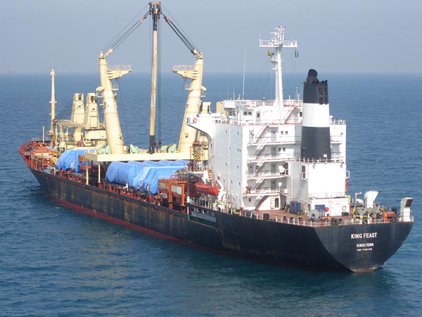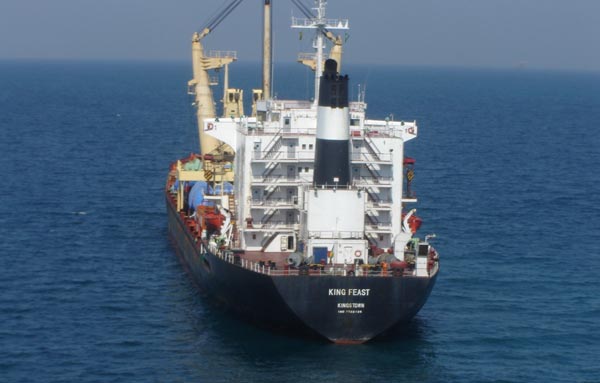 | 24th October 2011. King Feast formerly MV Silvia Sofia was sighted arriving to anchorage outside Dammam Saudi Arabia. I was conning my vessel into the fairway as a ghost from the past, headed into the anchorage. Amazing at 32 years old. John Townsend. Posted on forum 24 October 2011. |