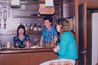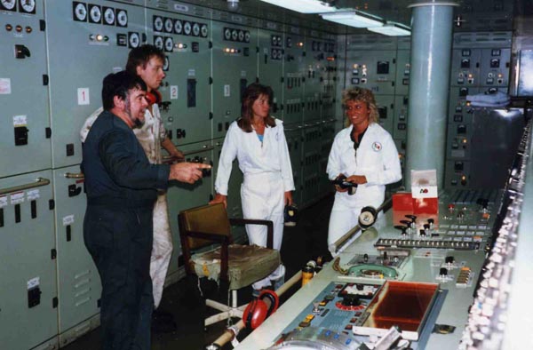The last time I sailed with Paul Heyman was on the Bibi in 1988 when my wife Sarah was also onboard. These photos show Paul and PJ showing Sarah and Jane Mules (wife of C/S Pete Mules) around the engine control room. That's the major difference these days, there's no fun anymore! Maersk run dry ships and will fire us if we laugh more than twice a day. Basically it's just work or kip until it's home time. Best thing about working for Maersk is the job-sharing scheme, so at least we have short trips and only work for 6 months a year. That's certainly better for seeing the family more often. Copyright © Mike Cox.