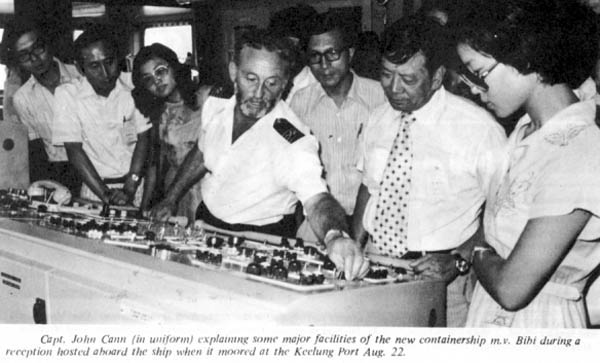 Mexican Line Sends New Ship to Bolster Service to TaiwanIn a bid to bolster its service between Taiwan and Latin America, Mexican National Line (TMM), despatched one of its three new full containerships, m.v. Bibi, to Keelung Aug21 (1979), to ship Taiwan-made cargo to Latin America. To mark the shift from semi-container service to full container service, the Mexican line hosted a reception aboard the 18,930-dwt Bibi when it docked at Keelung Port Aug.22. Some 30 local exporters were invited to attend the reception and visited major facilities of the vessel. The new containership is 178 metres long, 26.5 metres wide and has a cruising speed of 20 knots. It can carry 816 TEU’s. The Mexican line will send two similar containerships to serve the same route in the succeeding months, according to Everett Shipping Agencies Limited, TMM’s agent in Taiwan. Call Everett at 414-8111 (10 lines) for details. SEPT. 1979 |