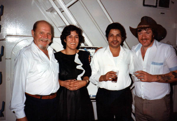 C/E Bob Chambers, Carolina Keast, Steward named Rocky, Elect-4th/Eng Keith Baines. Photo copyright © Carolina Keast. |