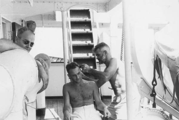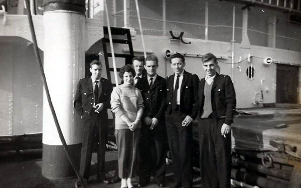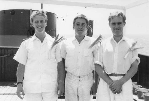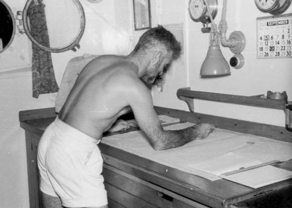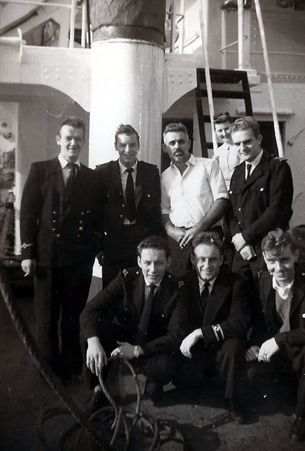 Left photo: 2 engineers, Dave Sapp (C/O). his wife (on ladder) , John Mathews (R/O) bottom- eng/me/eng.