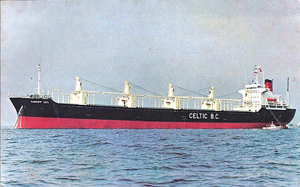 The Cardiff City was built in 1975 by Hayashikane Shipbuilding & Engineering Co Ltd - Shimonoseki YC. Yard/hull No.: 1179. It was to be time chartered by Reardon Smith, but was then purchased by them and changed to British flag by MHI, Kobe.