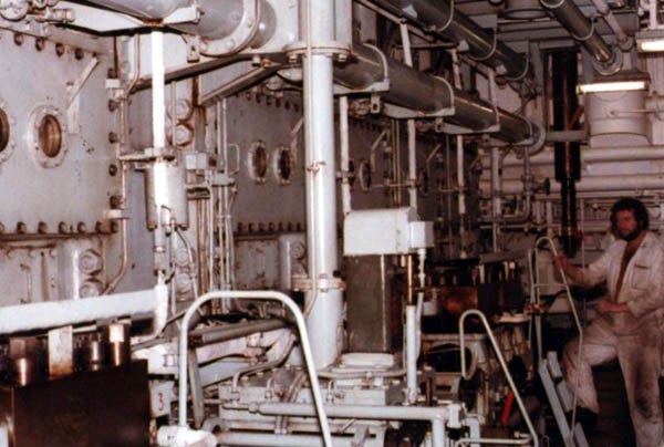 | These photos were taken in the engine room in 1978. The engineer in the photos is Willie John. All photos copyright © Willie John. | ||