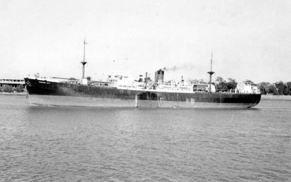 | The Cornish City on her way up river past New Orleans to load grain for India in 1962. This photo belongs to Peter Bloomfield and was first published in Tony Crowther's "The Memories" booklet. |