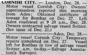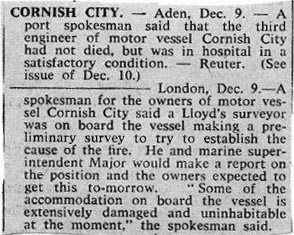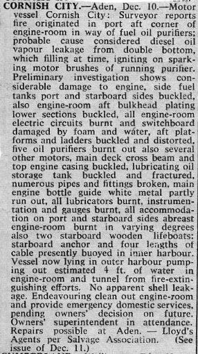 | Cornish City at anchor Aden three days after the fire. Copyright © George Wilson. |