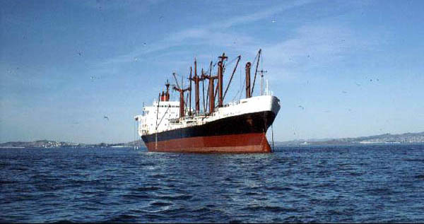 | Cornish City at anchor in the Pacific 1973. Copyright © John Howell. |