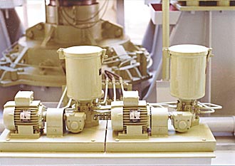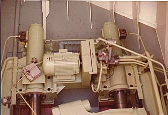 These are the hydraulic pumps for the aft mooring winches as fitted on the Eastern City. A similar set is in the fo'castle for the forward mooring winches and windlass. |