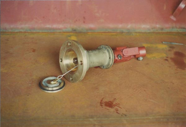 | The left photo shows the deck arrangement for opening the valve, and on the right is the assembly before it is fitted. | ||
