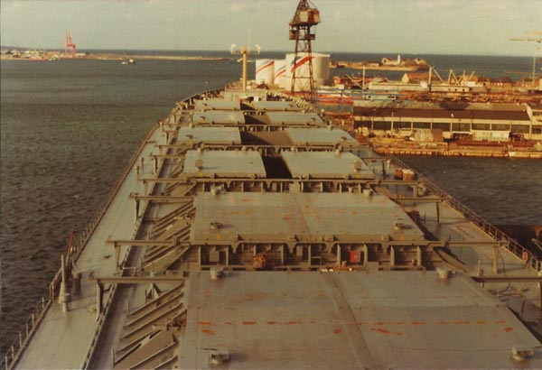 | These two photos show the hatch covers taken from up on the bridge wing. | ||