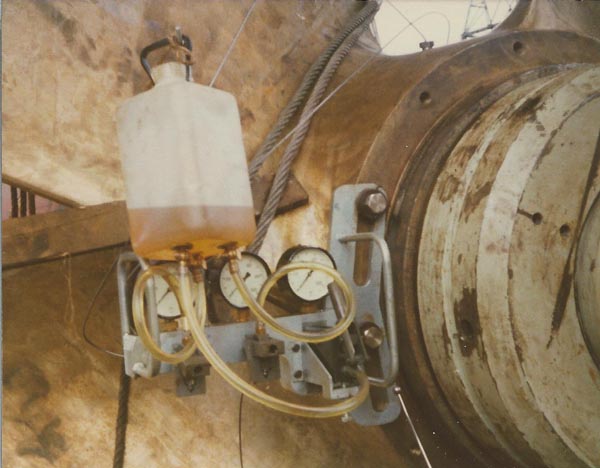 | The pumps for tightening or removal of propeller and nut. The two small pumps are for the propeller boss and the larger pump for the nut. All photos copyright © Reardon Smith Ships. | ||