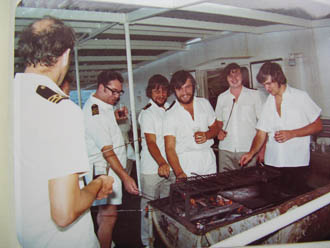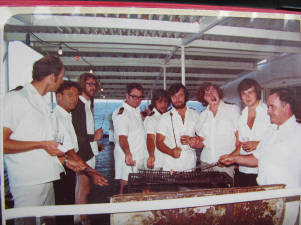 Master: A. D. Lightfoot, C/O: D. J. Mockett, 2/O: R. S. MacKay, 3/0: E. Bingley, R/O: B.Stagg, C/E: J. G. Howell, 2/E: R. M. Paddock, 3/E: D. Quaye, 4/E: R. Sanders, J4/E: A. Frost, Elect: T. Willoughby, C/S: R. G. Moylon, Eng Cadet: C. Rees. |