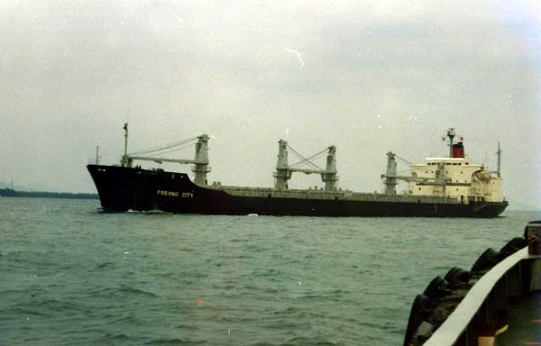 | Fresno City in Dunkerque in April 79 prior to sailing for Dammam and Basra on a CAST charter. Copyright © Terry Hunter. |