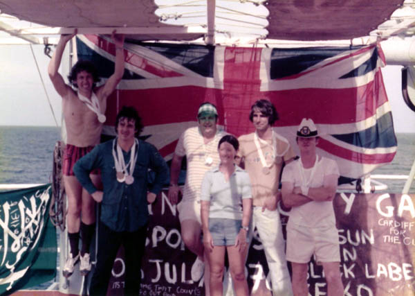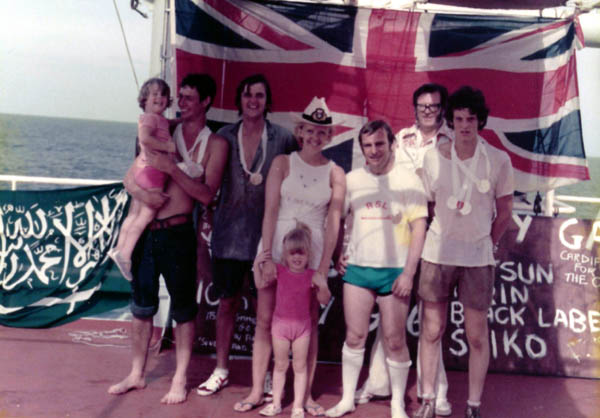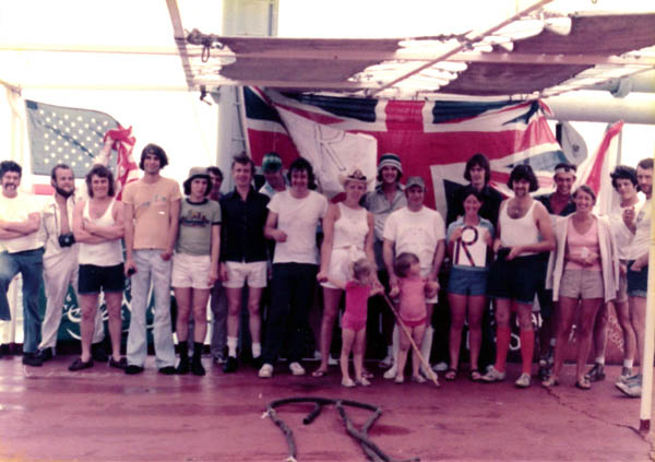 L-R:- M Perrott (3/E), D Cumming (3/O), ? (2/Elect), unknown, P Davies (J/E), P Baverstock (C/O), J Fitzsimmons (C/E), R Vanner (Capt), H Gale (2/O), Caroline Vanner, Dootie, unknown, Alex, T Graham-Russell (2/E), Julie Roberts, A Hobin (4/E), Keith Roberts (Elect), J Birsdale (D/C), Tricia Thomson, unknown (Mobile D/C), unknown (J/E). |