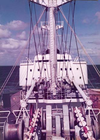 Four cadets in front of bell on Tower of Pisa   Officers in ship's bar