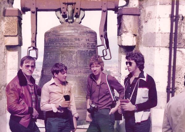 Top of Tower of Pisa. Dean Owen, J J Moore, Jerry Vincent, Steve Morgan.   Maria Elisa's Bar. Ben, Pete Borley, Dave Randell, Steve Broderick, Phil Walker, Mike Cox, Al White.