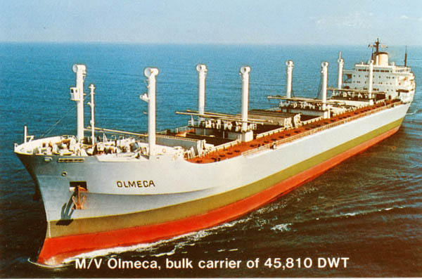 | TMM bought two of the RSL fleet that they chose to name Olmeca; Atlantic City (4) in 1976, when she was initially named Atlantic, before becoming the Olmeca in 1979. In that guise she remained with TMM for a further year, before being sold out of their fleet in 1980 to become the Orient Coral trading for another five years until July 1985 when she was broken up in Dalien. The photo above is the ex-Atlantic City. In 1982 the Mexicans bought the Fresno City (4) and she was also named the Olmeca. Six years she remained with TMM before she, too, was sold on as the Singa Sailor. She was broken up in Zhoushan in June 1994. The photos on page 2 are from the ex-Fresno City, but we do not have a ship photo. |