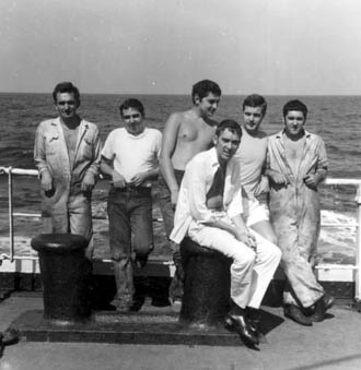 001d: Dave Jennings, John Davies, Kelvin Blunt, Ray Jennings, Hugh Burns 3rd Eng (just see the top of his head), lad in the black shirt Phil Mathews(?), Sean Cullinane. |