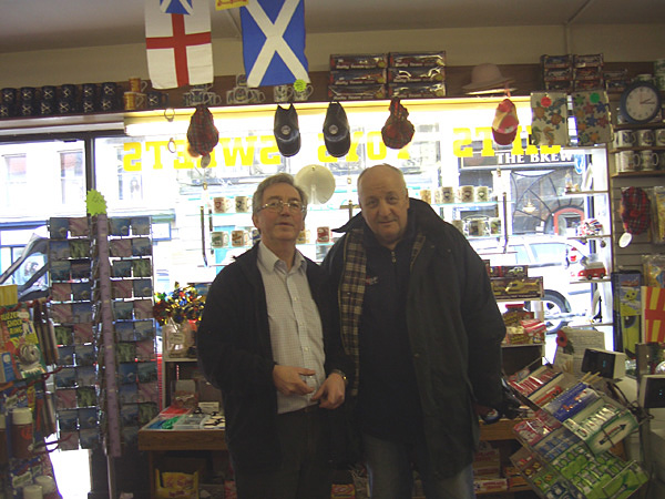 | Have attatched a photo of myself (John Gardiner lekie) and Dave Ricketts (engineer) taken approx April 2009 when Dave called into my emporium in Berwick-upon-Tweed. Looking out through the shop window you can see the BREWERS ARMS,the local of Robbie Bell retired RSL C/Eng who is still going strong. |