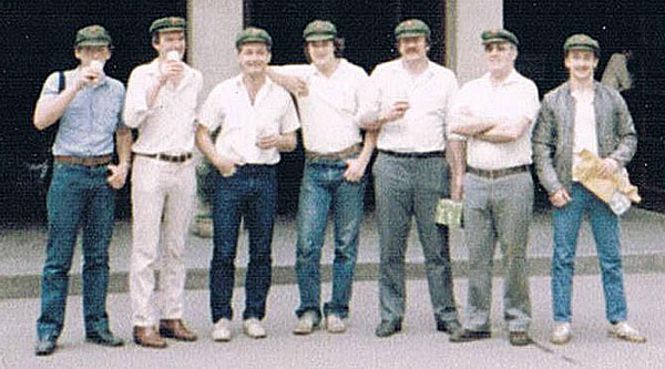| From right to left it is Phil Tate, Roger Shannon, Keith Baines, Martin Evans (?), Robin Reed, Pete Jones and I can't remember the last one. |