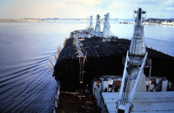 At Coos Bay after competing loading.   Arriving Coos Bay after deck cargo shifted.