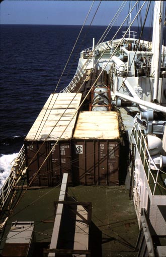 On the beach in Accapulco, From left J/E Mike Bater, Electrician Ravi Kumar, ? J/E. We had a week in Mexico City and a week in Accapulco before the ship arrived.