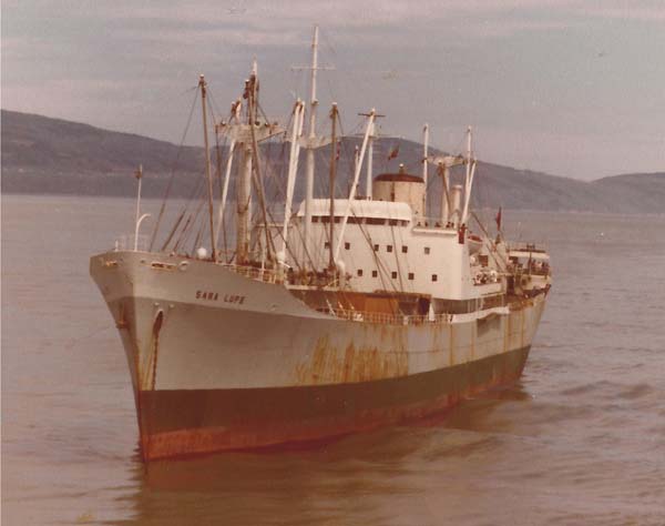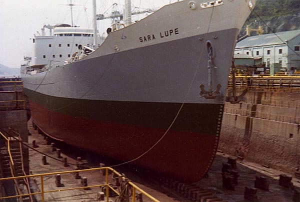 | Sara Lupe leaving Aioi drydock in 1973. Copyright