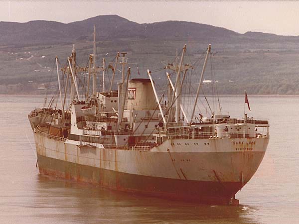 | These two photos were taken in the St Lawrence, probably between Three Rivers and Quebec if not beyond, awaiting to berth at Montreal. 25 May 1977. Copyright © David Thomson. |
