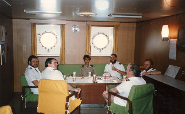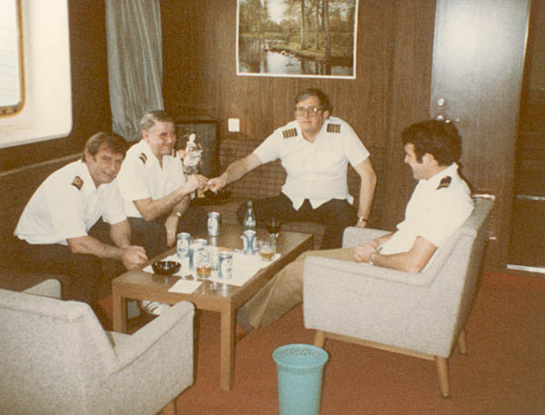 R/O: P.Bidmead, 3/O: E. Ramirez, C/O: I. Woolard, C/E: Legs Diamond, 2/E: Roger Shannon, Catering Officer. |