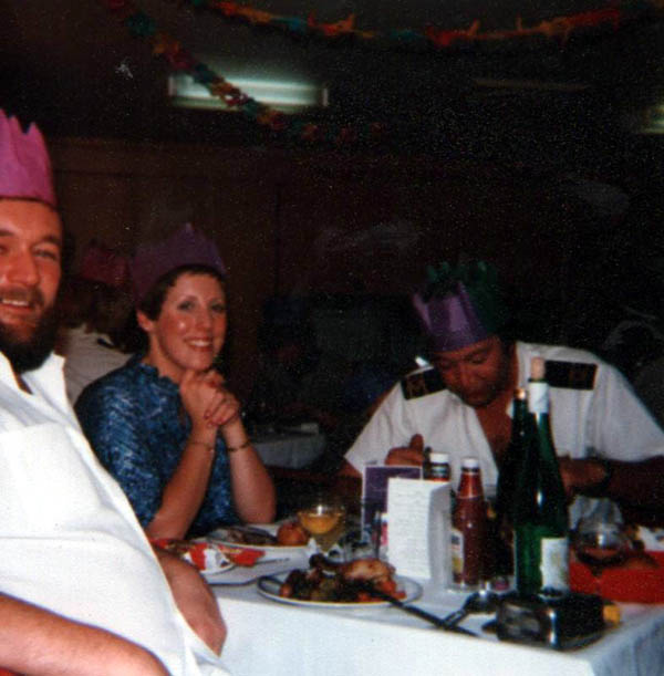 Willie & Diane John and Colin Hughes enjoying Christmas Dinner.