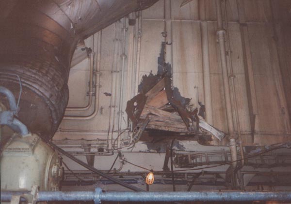 The duty engineer was starting up a generator when the flywheel disintegrated. One large piece went through the side of the ship which sank at it's moorings. Luckily the ship was alongside and settled on the bottom. No one was injured. wasn't there at the time but I remember having to crack test the flywheels of the generators on the sister ship. That's as I remember it but the finer details such as the name of the sister ship escape me. I do remember that Ianto Morgan and I had many hours of "Fun" trying to get the generators into some sort of working order. Roger Shannon. Posted on forum 28 March 2010.