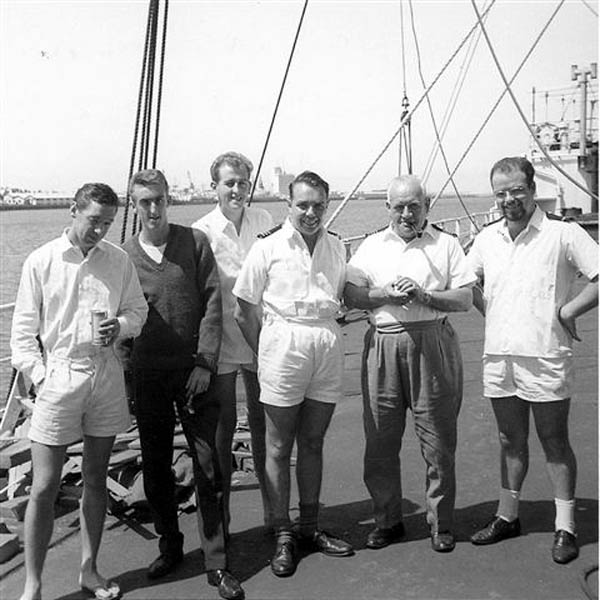 L to R. Tony the Leckie from Swansea, Deck App. visiting from Great City, Possibly the same, Eric Poingdestre 2/E, Bert Lester C/E, Colin Gateshill 4/E.